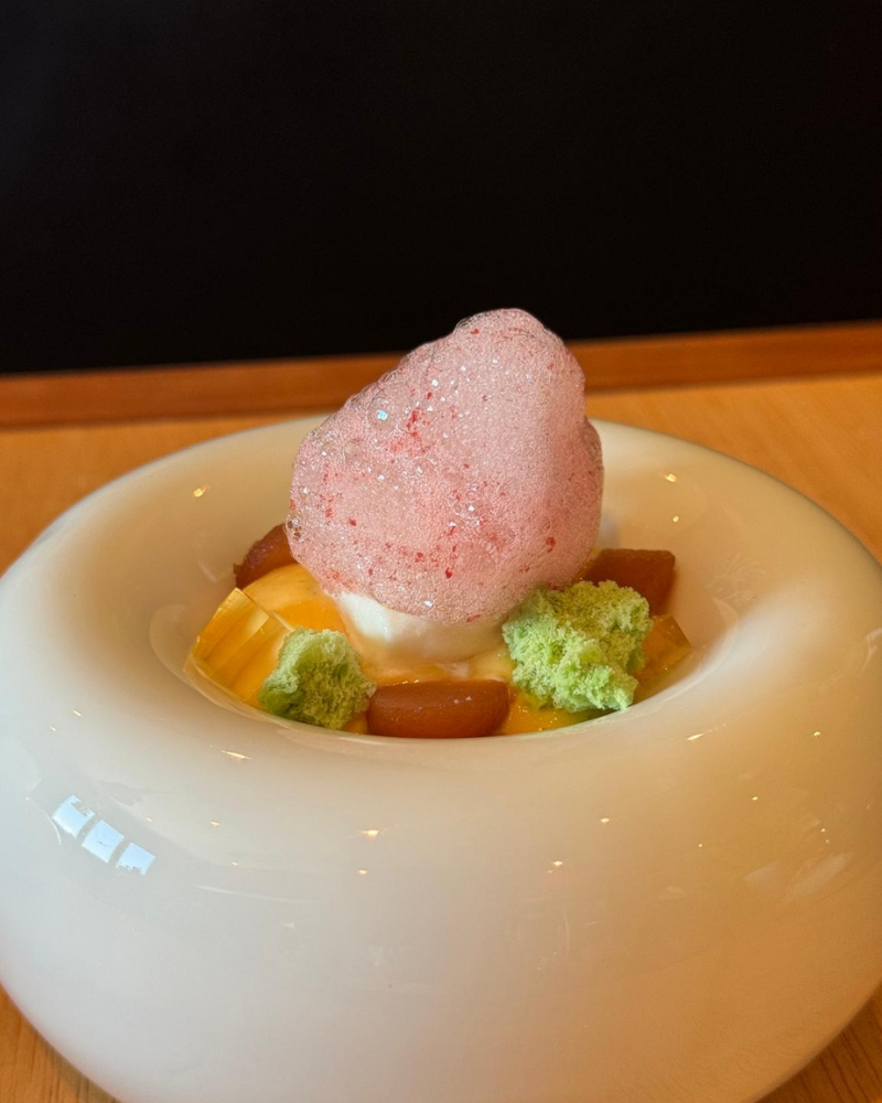 Cogollo: Asado a la brasa con vinagreta de frutos secos y helado de ortiga.